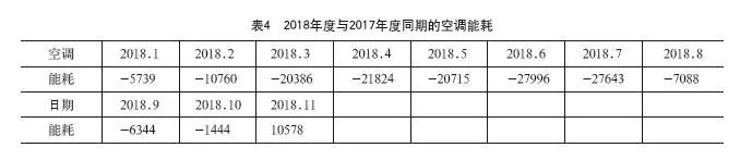 本節(jié)將對項目改造前后近兩年相同月份的空調(diào)能耗進行對比分析。我們設(shè)定上海地區(qū)每年的天氣都一樣,由此,比較了2018年度與2017年度同期的空調(diào)能耗,得出表4所示的數(shù)據(jù)。我們用2018年度的空調(diào)能耗減去2017年度的空調(diào)能耗,負值則表示2018年度低于2017年度的能耗值,正值則表示高于,表中單位為kWh。與此同時,我們監(jiān)測在此期間IT設(shè)施的功耗運行平穩(wěn)(見表5)。