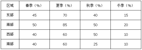 下表列舉了全國各區(qū)域季度平均濕度情況,通過了解這些信息幫助我們實(shí)時(shí)的對機(jī)房所需濕度進(jìn)行調(diào)整;