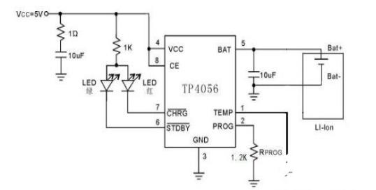 它主要由一個(gè)鋰電池充電管理芯片TP4056和外部分立器件構(gòu)成。