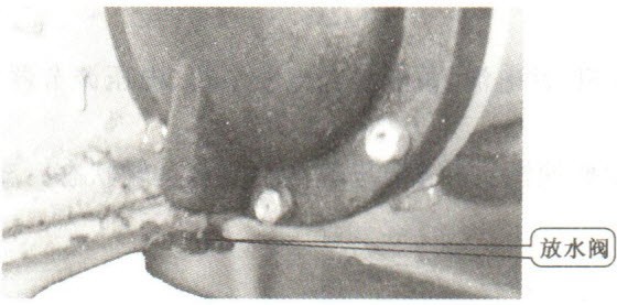 首先打開潤滑油冷卻器放水間,如圖6-38所示。若發(fā)現(xiàn)放出的冷卻液中有潤滑油或白色渾濁物時(shí),然后再從潤滑油冷卻器上打開放油閥,如圖6-39所示。若放出的潤滑油是白色渾濁物時(shí),可斷定潤滑油冷卻器內(nèi)部芯子或密封墊片損壞。