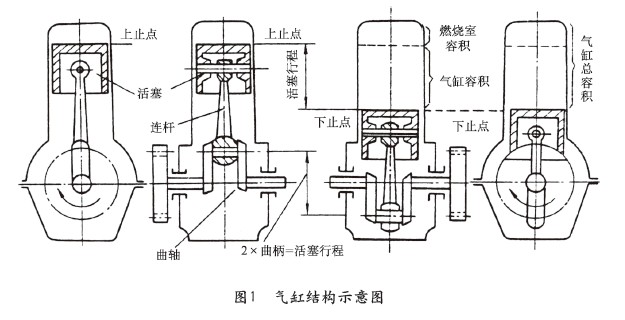 柴油機(jī)的基本結(jié)構(gòu)如圖1所示:有氣缸、活塞、連桿、曲軸、飛輪。