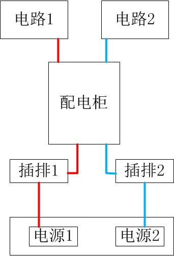 上面這種,從電路到電纜全都是兩套供電裝置的方式即為雙路電源,能允許任何一個(gè)位置單點(diǎn)故障而不影響最末端的IT設(shè)備使用。請(qǐng)注意,我這里用兩種顏色來表示電纜,電路1和電路2分別經(jīng)由兩條來自不同位置的供電電纜同時(shí)進(jìn)入機(jī)房配電柜,由配電柜出來也是經(jīng)由兩條電纜進(jìn)入機(jī)柜內(nèi)兩條插排的。這是真正的雙路電源供電模式,安全可靠性是最高的。